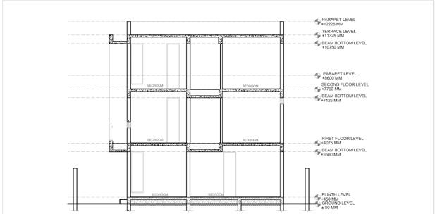 East Side elevation is also the River side elevation making it as the main elevation towards the proposed master plan. Maximum opening are provide on the east side.