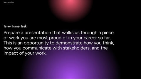 Prepare a presentation that walks us through a piece of work you are most proud of in your career so far. This is an opportunity to demonstrate how you think, how you communicate with stakeholders, and the impact of your work.