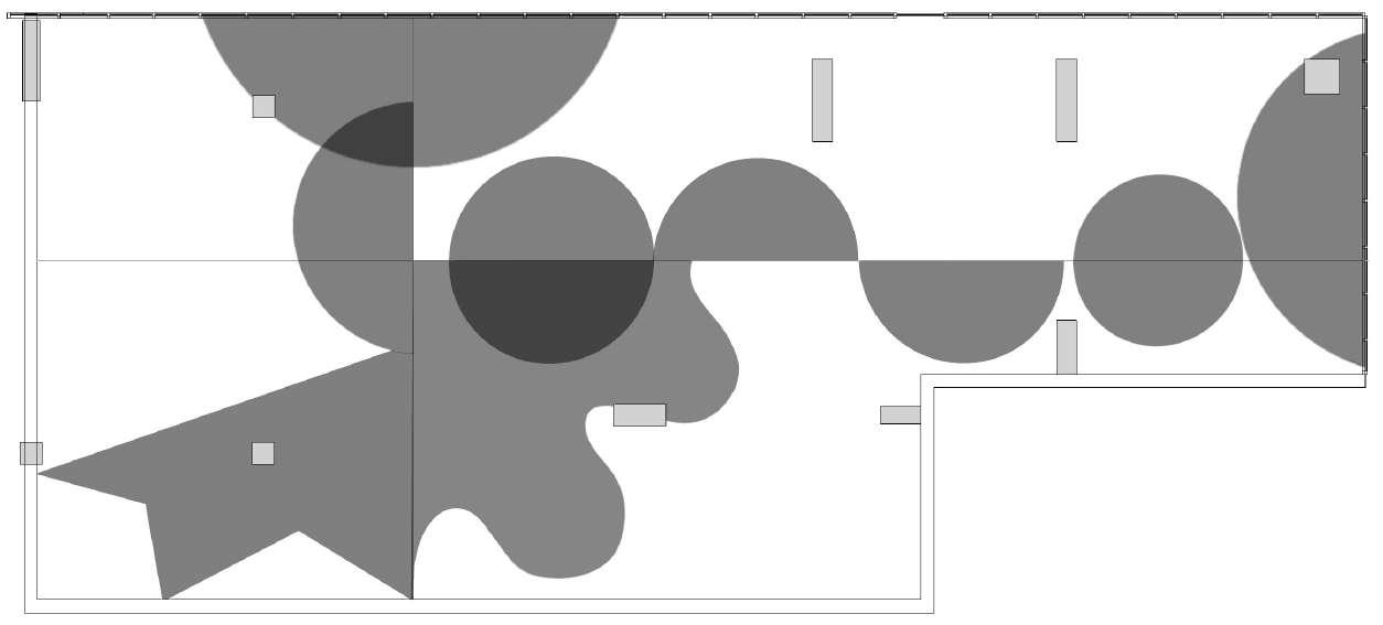 “An interlocking spatial relationship results from the overlapping of two spatial fields and the emergence of a zone of shared space When two spaces interlock their volumes in this manner each retains its identity and definition of space But the resulting configuration of the two interlocking spaces is subject to a number of interpretations ”