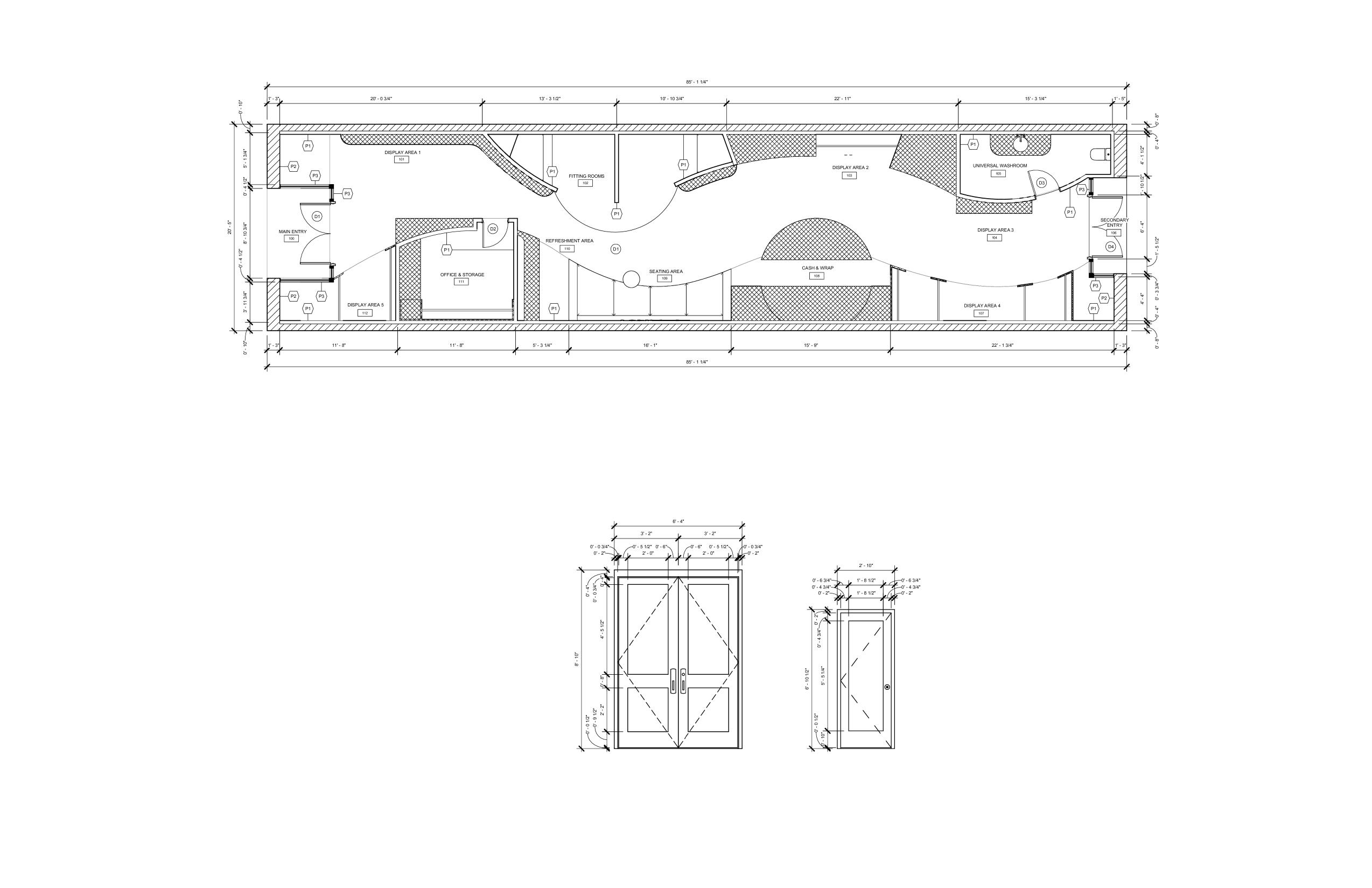 Legend Main Entry 1 Display Area 1 2 Fitting Rooms 3 Display Area 2 4. Display Area 3 5. Universal Washroom 6. Secondary Entry 7. Display Area 4 8. Cash & Wrap 9. Seating Area 10. Refreshement Area 11. Office 12. Display Area 5 13. 13