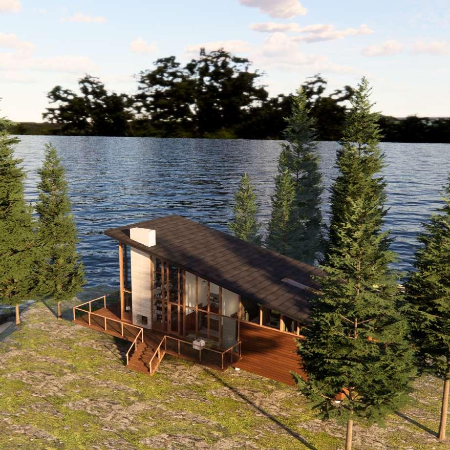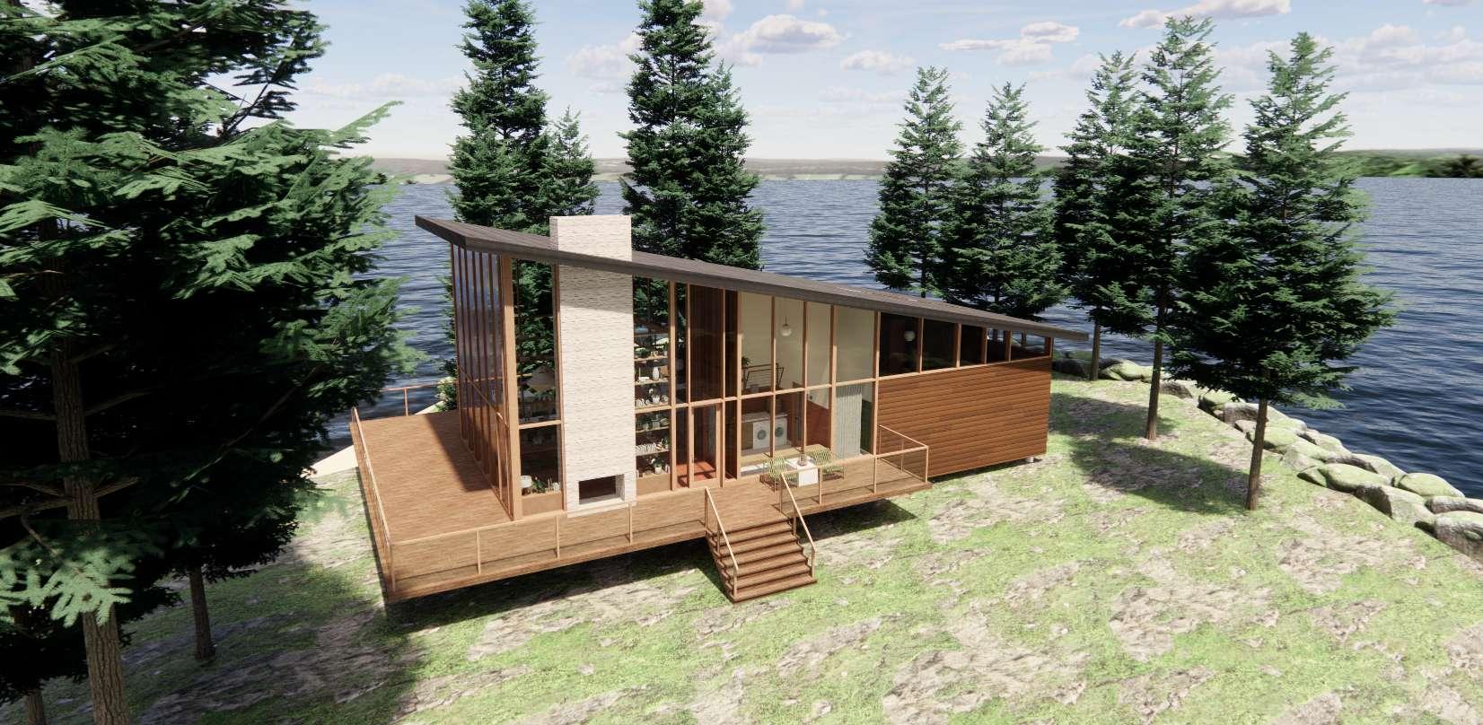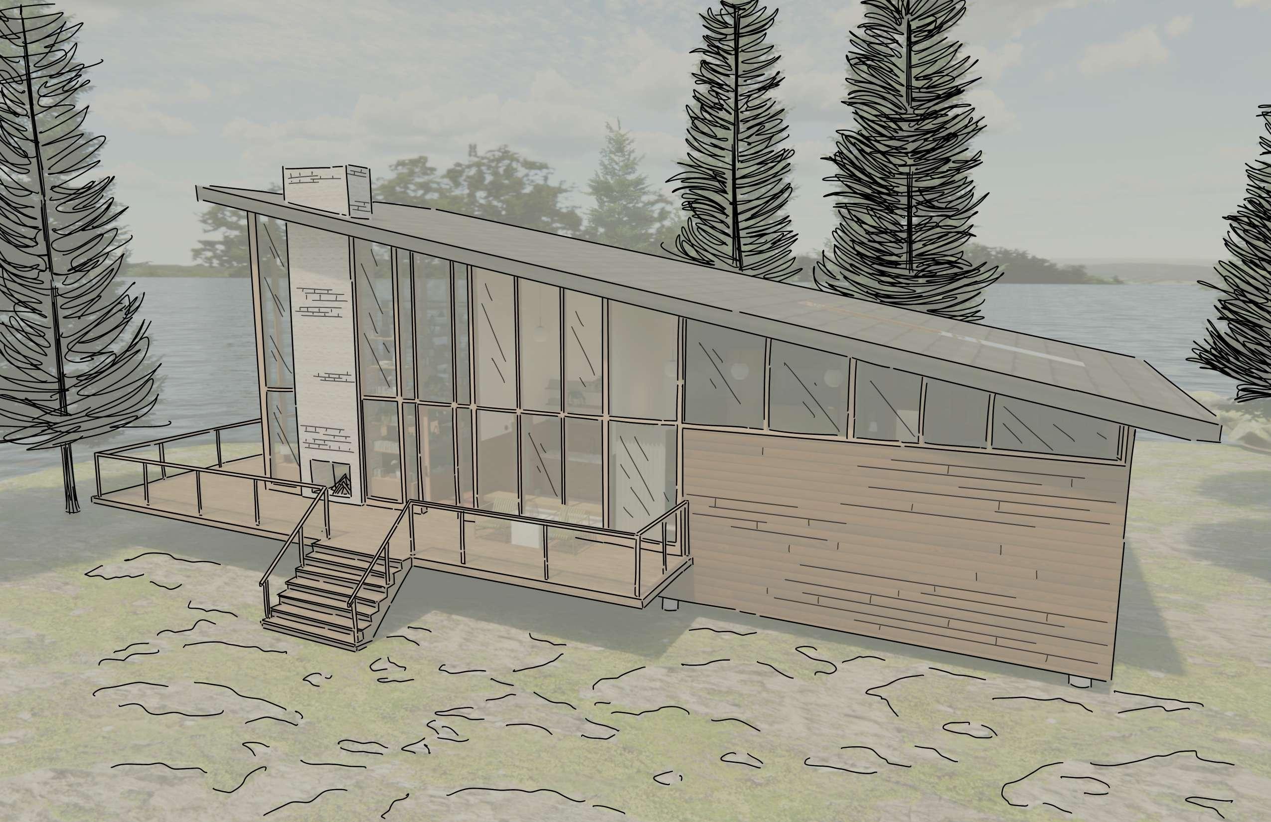 This Georgian Bay cottage was a project that focused on architecture and landscaping by using the site's organic topography and views to articulate the client's needs. The clients of the Georgian Bay cottage consist of a family of three; 2 parents and their son, who spends most weekends at the cottage for work The conceptual approach for the cottages’ design was to create a floor plan that optimized the site’s location, topography views and lighting. Using the site’s different topography as inspiration, I wanted to translate the natural levels into the layout while still having the cottage be generally on one floor. Throughout the entire cottage, there are large, floor-to-ceiling, strategically placed windows that allow for optimal views and lighting. Upon walking into the cottage, through the main entrance, you’re presented with two views; An east-side view through the living room and a south-side view through the dining room.