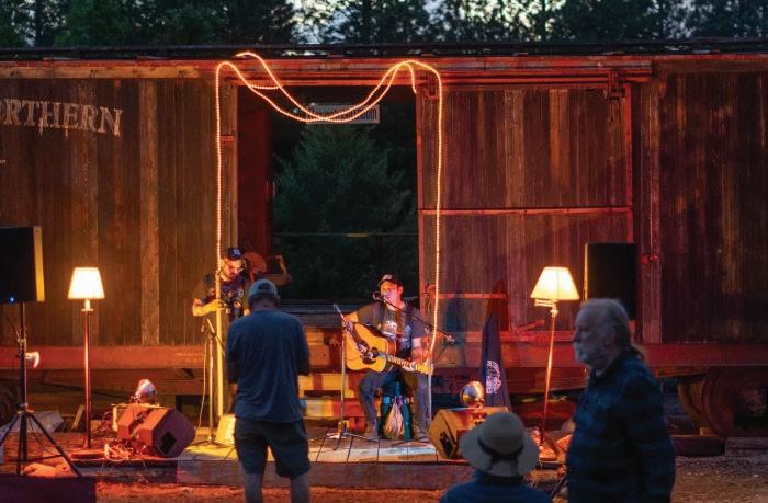 What some of them are up to tonight is watching a band play in a decommissioned boxcar at the Black Butte Center for Railroad Culture, around 15 miles up the tracks from Dunsmuir.