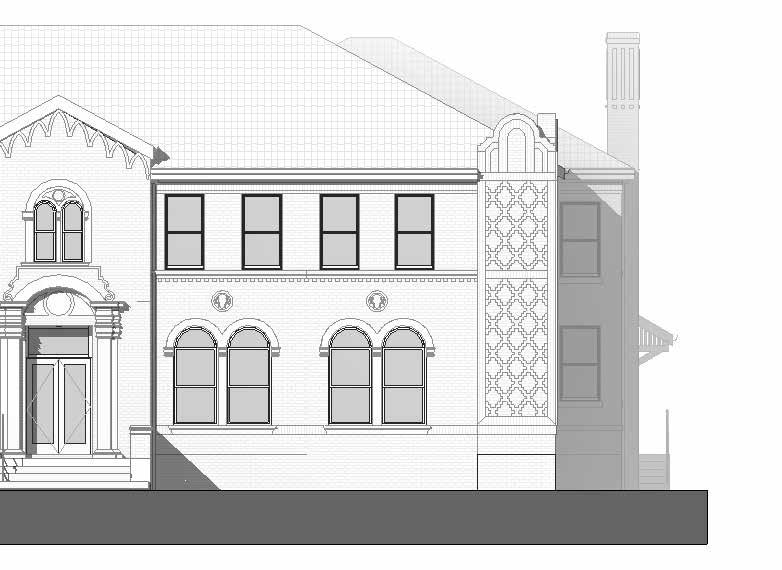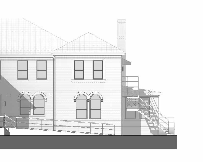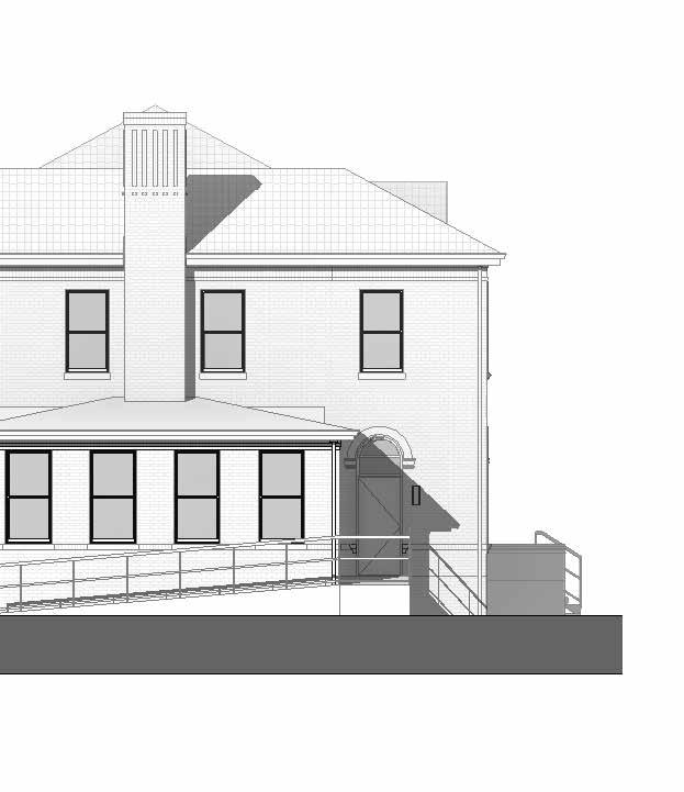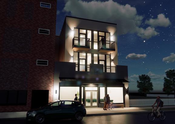 HOTEL CAPE CHARLES OFFERS A UNIQUE LODGING EXPERIENCE IN THE HEART OF THE EASTERN SHORE. THIS PROJECT OUTLINES AN AUXILIARY BUILDING TO THE MAIN HOTEL WHICH WAS COMPLETED IN 2012. THE BUILDING IS HOST TO A CONFERENCE CENTER AS WELL AS ADDITIONAL GUEST ROOMS AND AN EXPANSION OF THE HOTEL’S EXISTING COURTYARD. AT THE GROUND LEVEL, AN EXISTING ONE STORY COMMERCIAL BUILDING MAINTAINS THE STREET-LEVEL EXPERIENCE OF THE HISTORIC SMALL TOWN. INSIDE, IT HAS BEEN TRANSFORMED INTO A MODERNIZED CONFERENCE CENTER, BORDERED AT THE REAR BY TWO GROUND-LEVEL GUEST ROOMS THAT OPEN INTO A PICTURESQUE COURTYARD. PERCHED ATOP THE EXISTING BUILDING IS A NEW MASONRY STRUCTURE, SUPPORTED BY CONTEMPORARY STRUCTURAL ELEMENTS BELOW, WHICH HOSTS EIGHT ADDITIONAL GUEST ROOMS. PATTERNINGS OF BACK-PAINTED SPANDREL AND ANODIZED ALUMINUM MULLIONS EMPHASIZE THE BUILDING’S VERTICALITY, PUNCTUATING THE GLOW OF THE GLAZED EXPANSE OF THE STREET-FACING CURTAIN WALL IN THE EVENING WHILE GUEST BALCONIES OFFER ELEVATED VIEWS OF THE TOWN. WITH THE GUEST EXPERIENCE IN MIND, THE DESIGN TEAM SOUGHT TO EMPLOY MODERN AMENITIES WITHOUT DISRUPTION TO THE HISTORIC FABRIC OF CAPE CHARLES.