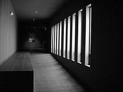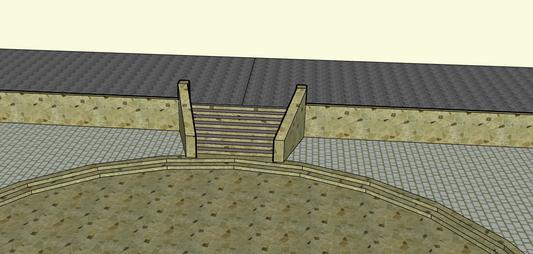 REPRESENTA A LA PLAZA CIRCULAR HUNDIDA DEL TEMPLO VIEJO, ESTA TENIA LAS PAREDES ENCHAPADAS CON PIEDRAS QUE ESTABAN FINAMENTE PULIDAS Y DECORADAS CON IMÁGENES DE SERES MÍTICOS, EN EL MUSEO REPRESENTA UN ACCESO HACIA EL TEMPLO CHAVÍN DE HUÁNTAR
