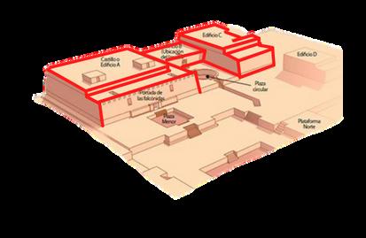 REPRESENTA UN CONJUNTO DE EDIFICIOS PIRAMIDALES CON GALERIAS EN SU INTERIOR