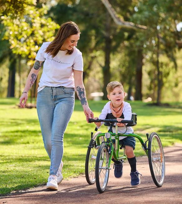 “Young children grow at such a rapid rate, it’s really hard to plan ahead and find the equipment that will suit their needs. Scott and the team help us plan for that, while making sure Naakin is safe and comfortable. And give him the opportunity to trial equipment so we can get it just right.”