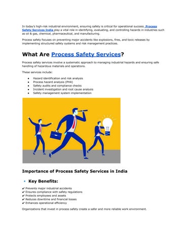 Investing in Process Safety Services India is essential for industries aiming to achieve safe, compliant, and efficient operations A proactive safety approach not only protects lives but also enhances business performance and reputation
