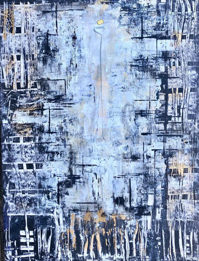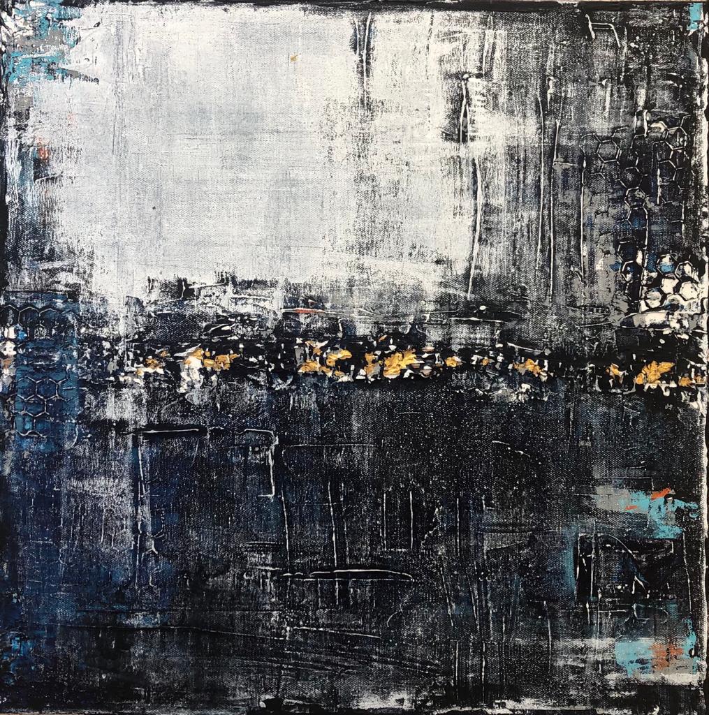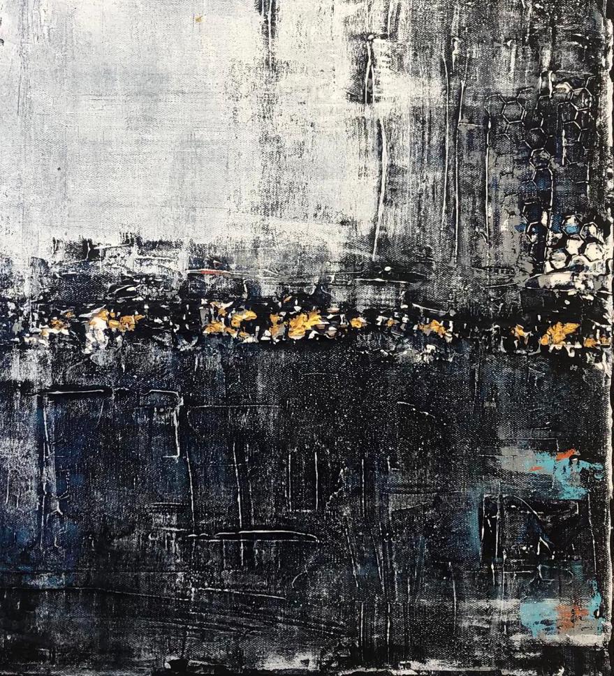 Mixed media acrylic collage on gallery-wrapped canvas