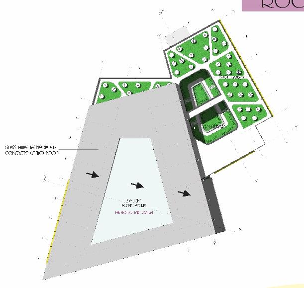 •Courtyard/ Green areas to minimize heat island effect. •Large but shaded/screened windows for air capture and natural ventilation and lighting