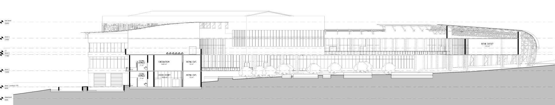 Pleats are well known to represent flexibility and comfort in fashion design. A well-designed building should be functional and comfortable for its users. The form of this building is a stepped design inspired by pleats in skirts. The longer part of the building has large windows to maximize natural daylight. Louvered aluminum sun shade, which mimics knife pleats, is also used as a shading device to control glare from sunlight during the day.