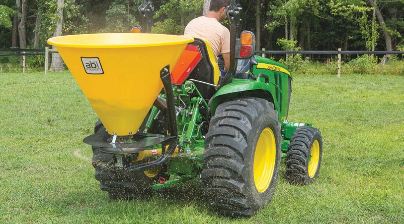 50 CALL TOLL-FREE: (877) 788-7253 4-SPEED GROUND DRIVEN SPREADER MODELS ABI’s 4-speed ground drive manure spreaders can be pulled with a garden tractor, ATV/UTV, or compact tractor, and are ideal for farms with limited acreage or space. Each ground drive spreader has a swing-away wheeled jack stand (footed jack on 85 ft3) that enables effortless tow vehicle hookup and storage. Engagement levers are easy to pull and require no difficult setup of cable/shaft hookups. The rear bumper bar ensures safety and damage-free storage and use. MANURE SPREADERS A HIGHER STANDARD FOR COMPACT SPREADERS 50 FT3 GROUND DRIVEN25 FT3 GROUND DRIVEN • Up to 4 horses • 680 lbs. • 2 beaters • 8 spreading paddles • 32 shredding blades • Up to 8 horses • 825 lbs. • 2 beaters • 10 spreading paddles • 32 shredding blades • 4 lever-controlled speed • 4 lever-controlled speed • Coal-tar epoxy bed liner • Poly-lumber floor • 12 gauge COR-TEN steel • Min. tow vehicle: 18hp mower or 350cc ATV • Coal-tar epoxy bed liner • Poly-lumber floor • 12 gauge COR-TEN steel • Min. tow vehicle: 22hp sub-& compact tractor or 550cc ATV