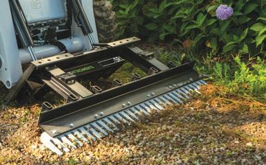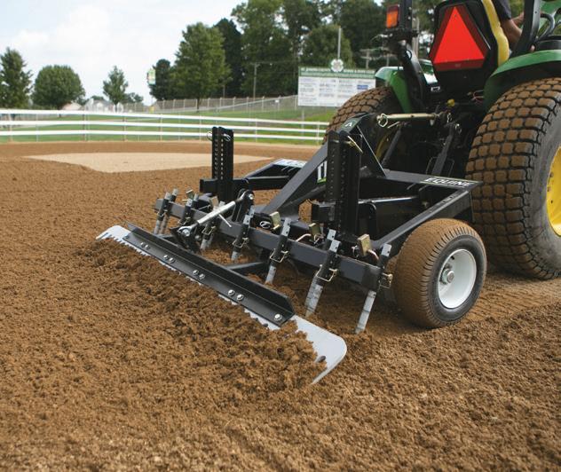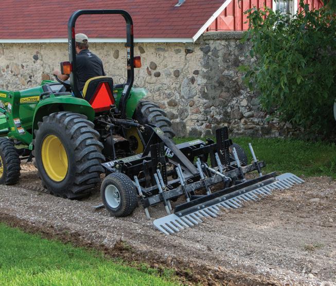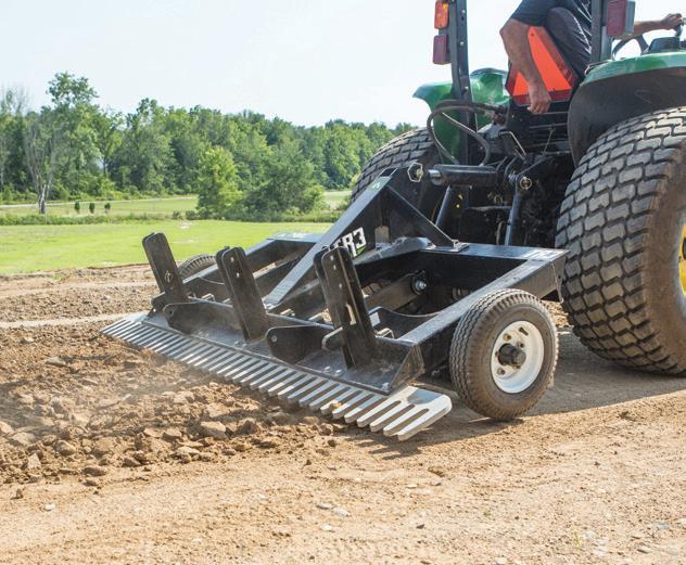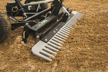 The patented leveling blade floats to automatically level high and low areas and maintain a perfect grade. Lock in place for more aggressive cut-andfill grading. Optional Rock Teeth help sift out larger debris and rock.