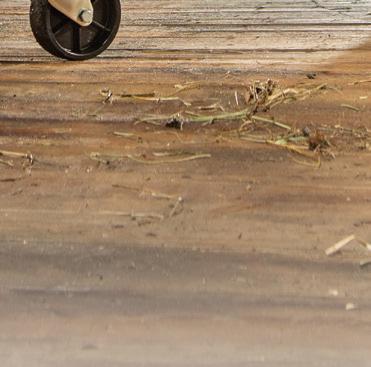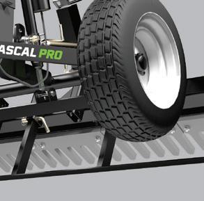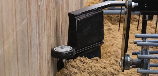 Foam-filled stabilizing wheels help keep the tool under control to avoid gouging into an arena’s base or sinking into loosened footing material.