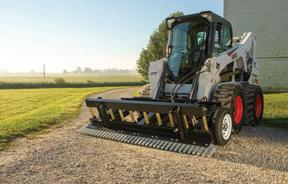 If the box needs filled, the hydraulic finish rake can also push loose material back, or it can collect displaced material and pull it into the box.
