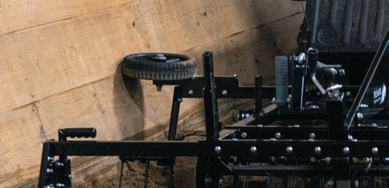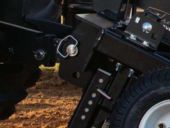 The patented wheel-lift system raises and lowers components for transport and consistent footing depth control.