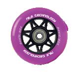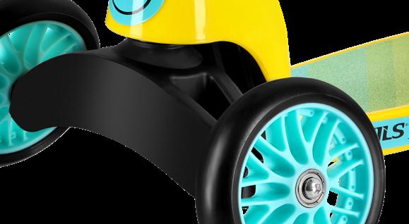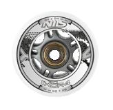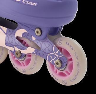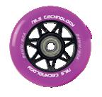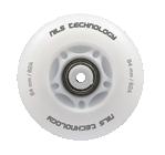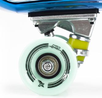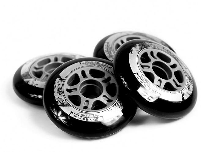The WHEELS used in inline skates, roller skates, scooters and skateboards are most often made of polyurethane – PU. Their most important parametres are their diametre and hardness. The wheel traction changes according to the wheel hardness. The greater the hardness, the lower the grip offered by the inline skates or roller skates. Soft wheels ensure good grip to the surface and absorb all values of vibrations. However, they enable relatively low ride. They are marked with symbols from 74A to 82A. Medium hard wheel fall within the range from 82A to 86A. They are most popular and they are used for recreational skating on asphalt. Hard wheels fall within the range from 86A to 100A. They are intended for aggressive skating. They provide for high speeds. They offer little resistance to vibrations, but on the other hand, they are very durable. The most important parametres of wheels are their diametre and hardness. The wheel size is usually indicated in millimetres on the wheel itself. The bigger the wheel, the greater speed can be achieved. Moreover, it facilitates riding on pavements and other irregularities. However, they offer limited rotation.Wheels are mounted on trucks with the use of bearings and spacer sleeves. Wheels of bigger sizes provide for easier ramp skating and are less sensitive to surface irregularities. Smaller diameters facilitate tricks such as grind, and reduce the skateboard weight but at the same time reduce it maximum speed. Most wheels have similar hardness, oscillating around 100A.