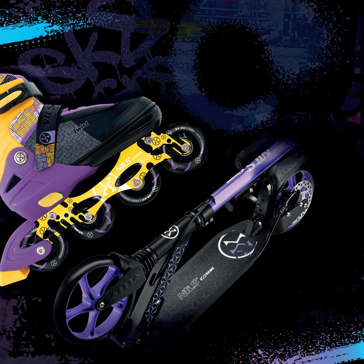 Nils Extreme is skating equipment designed to bring a lot of fun for everyone, regardless of age! A wide range of equipment provides an opportunity to start the adventure as well as to develop skating skills. The catalog includes roller-blade skates, roller skates, skateboards, scooters and a range of accessories necessary for skating.
