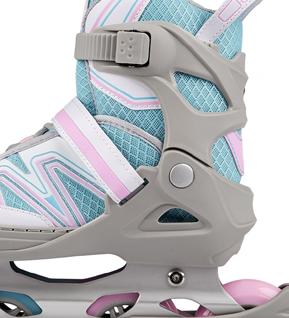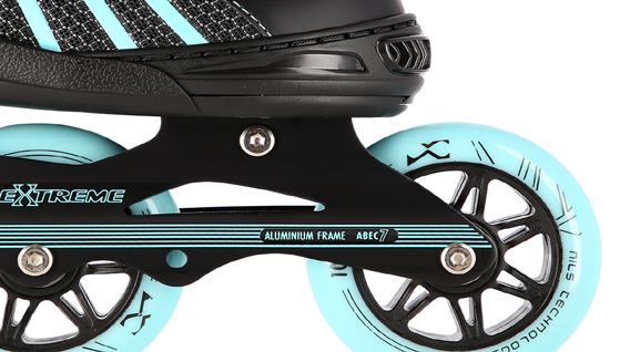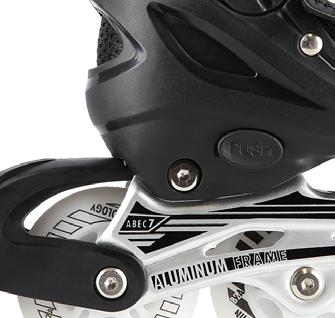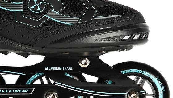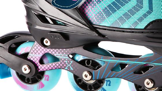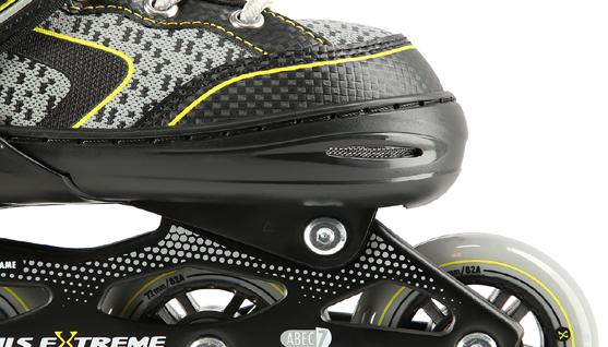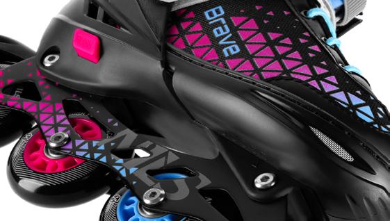 The BLADE is an element on which the wheels along with bearings are mounted. Most often it is made of polypropylene PP, or aluminium. Aluminium blades are light and rigid, which translates into stability and speed. They are resistant to deformation and mechanical damage. Aluminium blades are perfect for inline skates intended for fast skating. PP blades are light, flexible and comfortable, but less resistant to mechanical damage. They offer good vibration absorption and thus they are recommended for use by children.