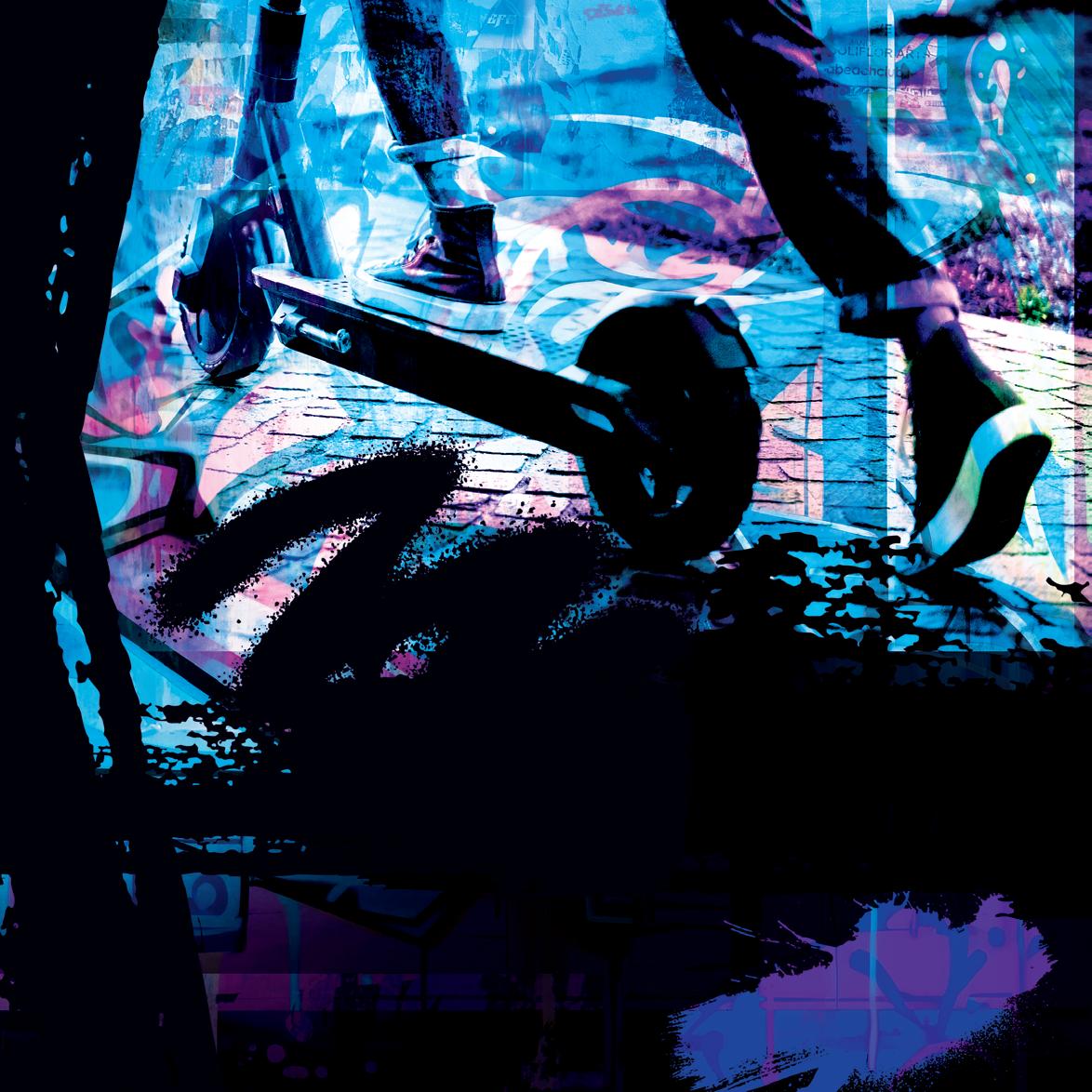 BRZDA – je použita jak u bruslí, tak koloběžek. U bruslí se skládá z brzdové kostičky a vzpěry. V závislosti od modelu může být výměnný celý brzdný prvek nebo pouze kostka. U koloběžek rozlišujeme brzdu ruční a nožní. Nožní rozdělujeme na pružinovou a elastickou. Pružinová brzda (spring brake) je připevněná na šroubu, který je připevněn k decku (nášlapu). Pružina na šroubu zajistí, aby se brzda vytočila nahoru a odklonila se od decku. Elastická brzda (flex fender brake) je dlouhá, kovová destička, která byla dříve vytvarována tak, aby obepínala kolečko. Připevňuje se nejčastěji pomocí jednoho nebo více šroubků. Stisknutí destičky způsobí dolehnutí celé brzdy ke kolečku. Ruční brzda se může objevovat u předního i zadního kolečka, může být disková nebo čelisťová. Aktivuje se stisknutím páčky na řídítkách.