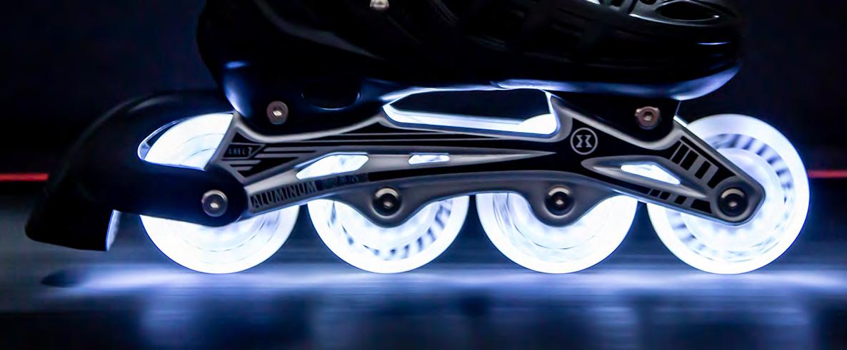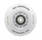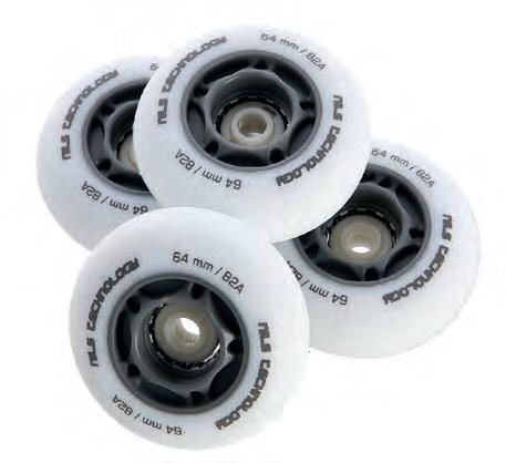 The WHEELS used in inline skates, roller skates, scooters and skateboards are most often made of polyurethane – PU. Their most important parametres are their diametre and hardness. The wheel traction changes according to the wheel hardness. The greater the hardness, the lower the grip offered by the inline skates or roller skates. Soft wheels ensure good grip to the surface and absorb all values of vibrations. However, they enable relatively low ride. They are marked with symbols from 74A to 82A. Medium hard wheel fall within the range from 82A to 86A. They are most popular and they are used for recreational skating on asphalt. Hard wheels fall within the range from 86A to 100A. They are intended for aggressive skating. They provide for high speeds. They offer little resistance to vibrations, but on the other hand, they are very durable. The most important parametres of wheels are their diametre and hardness. The wheel size is usually indicated in millimetres on the wheel itself. The bigger the wheel, the greater speed can be achieved. Moreover, it facilitates riding on pavements and other irregularities. However, they offer limited rotation.Wheels are mounted on trucks with the use of bearings and spacer sleeves. Wheels of bigger sizes provide for easier ramp skating and are less sensitive to surface irregularities. Smaller diameters facilitate tricks such as grind, and reduce the skateboard weight but at the same time reduce it maximum speed. Most wheels have similar hardness, oscillating around 100A.