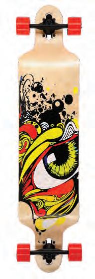 The DECK is the main element of a skateboard, which offers room for legs. It is covered with sandpaper (grip) to increase leg traction on the skateboard. It is made of plywood. Sometimes other materials are added to the deck structure, for instance: glass fiber, carbon fiber or kevlar to reduce the deck weight and improve its durability. Standard width of the deck is 19-23 cm. Wider decks are usually used by skaters specialising in vert skating. Such decks are characterised by better steering and stability when shredding down steep slopes or half-pipe sidewalls. Narrower decks are intended for street skaters who prefer more technical tricks. A wide board often hinders execution of such tricks.