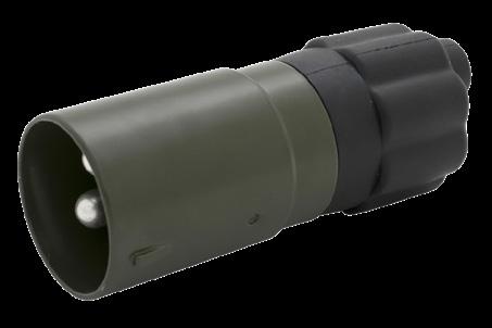 Propp med ändskydd. Levereras med stift för 35 mm² kabel. Stift för lödning alternativt skruvanslutning. Godkänd enl. VG 96917 (för militärt bruk).
