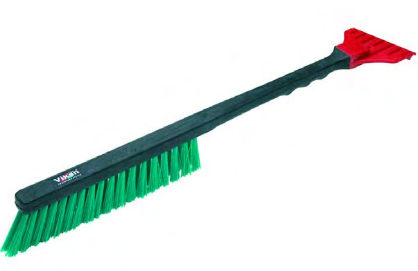 En snöborste anpassad för lös snö med gummiklätt handtag för bruk i låga temperaturer. I svart polypropylen med blandade fibrer.