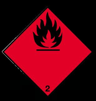 2521.03 Varningsetikett ADR brandfarlig gas Varningsetikett för ADR-S, ADR IMO med IMDG-koden. Brandfarlig gas. Klass 2.