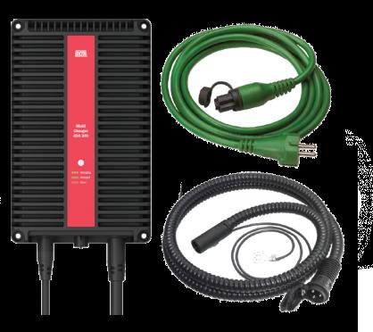 Med ChargerKit ingår allt som krävs för en komplett och smidig installation av Defa MultiCharger 40 A 24V. Laddaren installeras smidigt genom de redan existerande 24 V kopplingspunkter som finns i fordonet. Batteriladdaren är både stöt- och kortslutningssäker och den är tillverkad för batterier upp till 500 Ah och kan underhållsladda ett batteri under obegränsad tid. När batteriet i laddaren behöver laddas görs detta per automatik. Konvektionskylning. ChargerKit består av MultiCharger 40A 24V, MiniPlug intagskabel (2,0 m) och MiniPlug Xtreme anslutningskabel (5,0 m).
