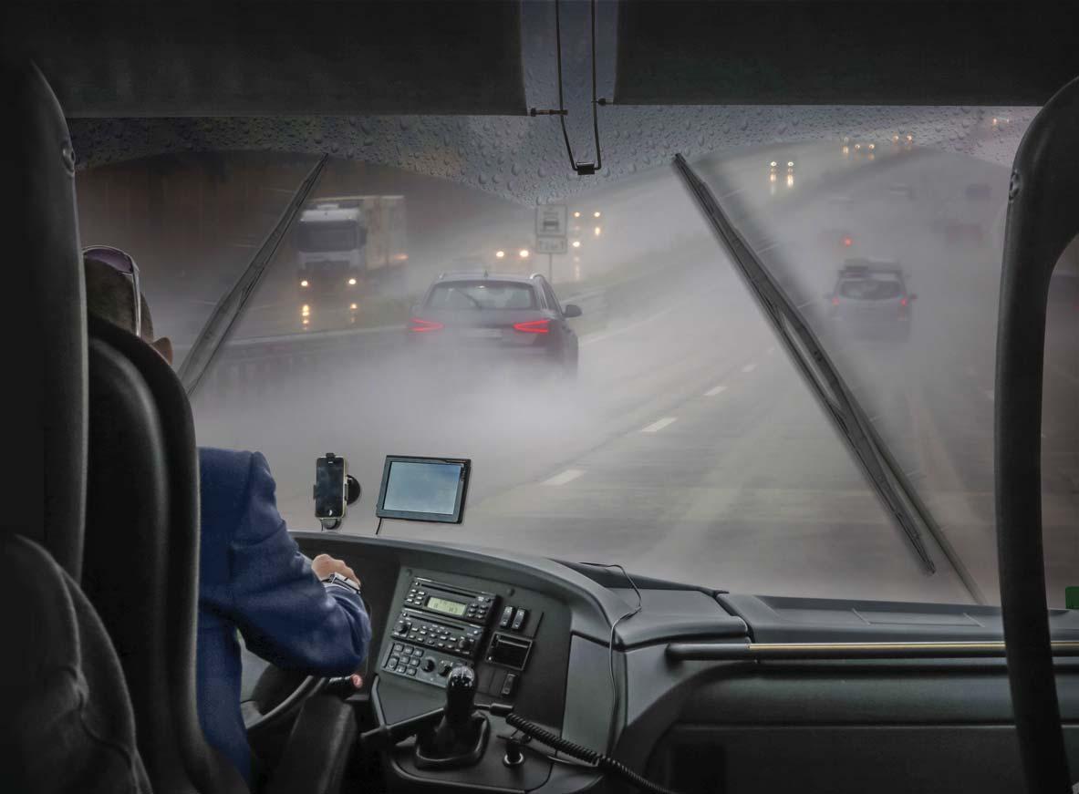 kuljettajalle ja 1 matkustajalle/Sõiduk kolme esiklaasi puhastiga – kasutatakse 2 x juhipoolset harja ja