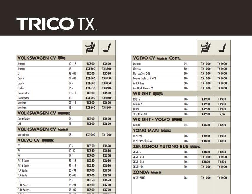 10- TX650 TX650 FH 10-12 TX650 TX650 FH 13- TX700 TX700 FH12Series 93-12 TX650 TX650 FH16Series 93-12 TX650 TX650 FL7Series 85-94 TX700 TX700 FL7Series 95-05 TX700 TX700