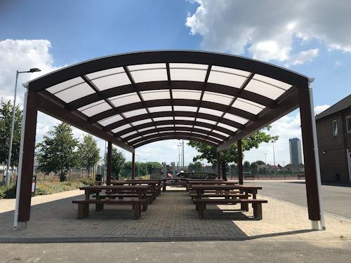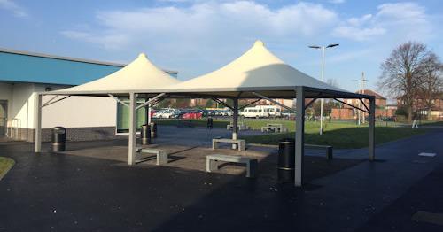 At the beginning of our business we worked mainly with schools and nurseries, supplying wall mounted canopies to create playground shelters and outdoor classrooms. However we knew that our canopies could also make a difference in many other sectors and so, as our range expanded to incorporate free standing canopies, we also began working with other sectors including healthcare, retail and hospitality, local authorities, and architects and contractors.