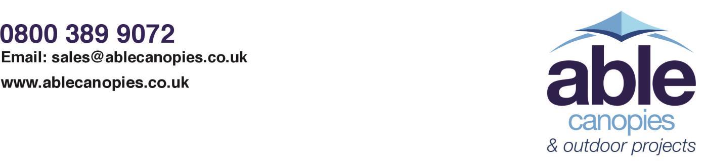 If you have any further questions please don’t hesitate to call us on 0800 389 9072 or email sales@ablecanopies.co.uk