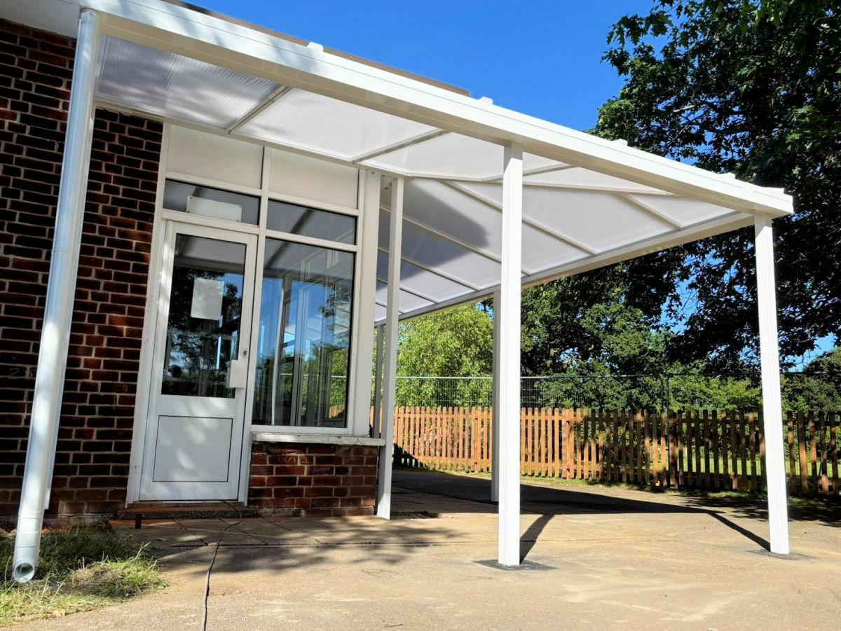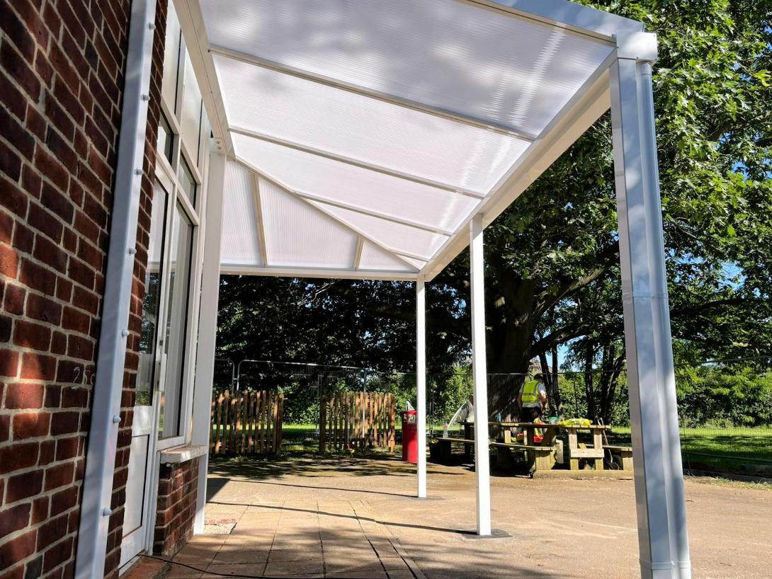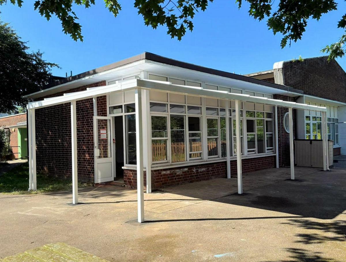 We could immediately see that our Coniston Canopy would be the perfect shade and shelter structure to provide the cover required as it ticked all the boxes After discussions to find out more about the area and the suitability of a wall mounted canopy, we sent an estimate over to the school for a Coniston Freestanding Canopy.