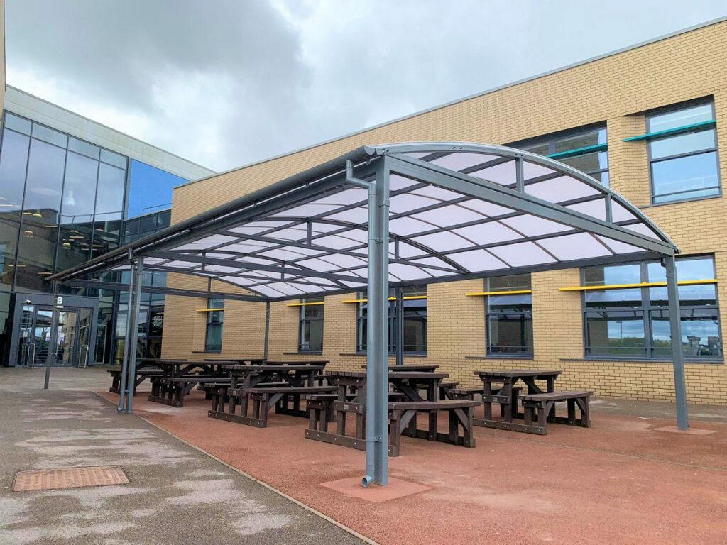 Above: The Welford Dome Freestanding Canopy installed at St Peter?s Academy in Stoke on Trent, Staffordshire