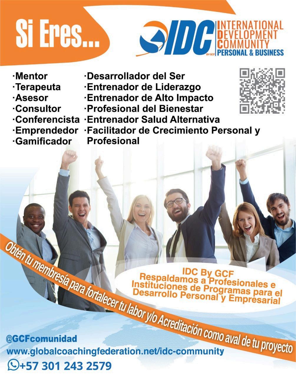 Disponibles las Membresías IDC y Acreditaciones IDC. www globalcoachingfederation net /idc-community Únete a IDC by GCF y forma parte de una comunidad global de profesionales y organizaciones dedicadas al desarrollo humano y empresarial