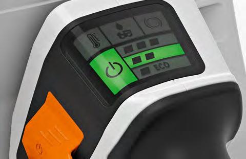 encontrar o melhor equilíbrio entre a performance necessária para a tarefa a realizar e a gestão da carga da bateria. O modo Eco limita a rotação da corrente a 24 m/s, o que é adequado para desramar ou cortar troncos de baixo diâmetro, e no extremo oposto, no modo