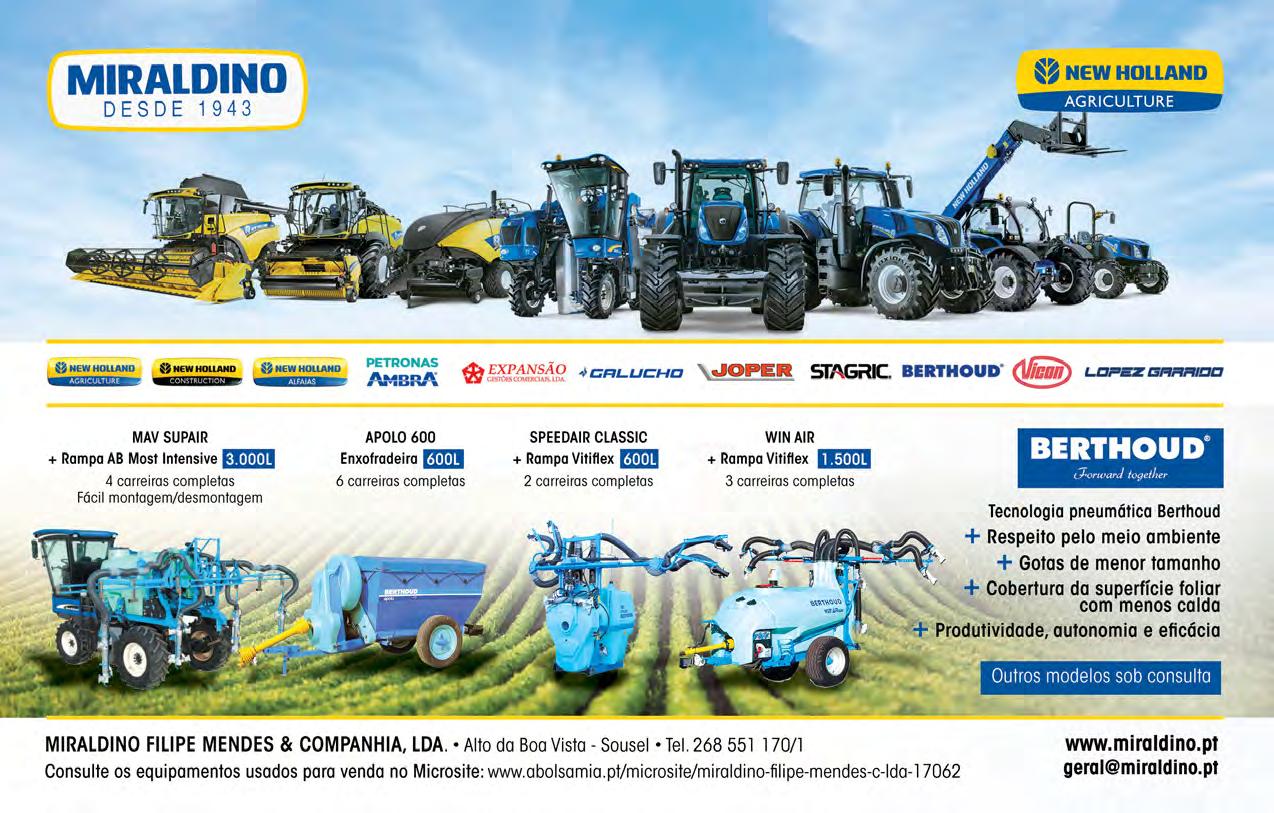matérias-primas continuam a subir e a escassez de máquinas para entrega é cada vez maior, depois das marcas terem escoado um stock que dizia respeito a atrasos relativos ao final do ano passado. Nesta fase, segundo nos relatou o Engº Nuno Santos, diretorcomercial do Entreposto Máquinas, “o arranque de 2023 dependerá das campanhas do final deste ano e das políticas económicas em que os governos europeus vão apostar”. A continuidade do período de guerra na Ucrânia, aliada a uma seca que tem inviabilizado a entrada das máquinas no terreno, esfriou a confiança do agricultor em investir e o ligeiro aumento em relação ao mesmo período do ano passado é, quase por inteiro, suportado pelo crescimento acentuado da Solis, marca que fortaleceu a sua quota de mercado. Mas a prova do decréscimo no mercado ao oitavo mês de 2022 fica clara com este dado: de janeiro a julho, todos os meses registaram mais de 500 tratores matriculados, e em agosto esse número não passou dos 439. Analisando os segmentos de potência mais vendidos, o escalão 51-120cv confirma a preponderância no mercado, justificada pelos apoios do Governo para a Renovação do Parque de Tratores Agrícolas - 52,3% dos matriculados -, ficando o escalão abaixo dos 50cv mais uma vez aquém dos 40%, comprovando a perda contínua de força. Quanto aos segmentos de maior potência, o de 121-200cv continua na linha dos 7%, enquanto o escalão acima de 200cv matriculou 6 tratores em agosto – um pouco abaixo da média dos primeiros sete meses (6,85), chegando às 54 unidades nos primeiros oito meses.