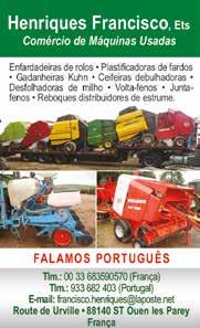 Usados: Hürlimann Prince 50 • Iseki TU1400 • Shibaura(3): ST333; S320(2) • MF 1260 • New Holland(5): T3.70F, TD3.50, TN65, BOOMER 35, BOOMER 45 • Goldoni Ideia 30DT (2) • Kubota(2): ME9001 CAB, 7001DT • Várias alfaias e motocultivadores usados em stock
