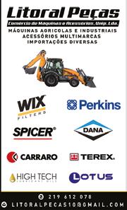 Usados: Tratores Deutz AGROTECNICA 7250 • New Holland(2): T8.435 e T8040 • Massey Ferguson 8690 DYNA VT • Fendt (2) 720 VARIO Profiplus, 939 VARIO Profiplus • John Deere 8370R• Frente de cereal Claas LEXION • Grades de discos Galucho(2) GLHR 28X26; GVL 36X26 • Grade rotativa Maschio, AQUILA 4,60MTS • Juntador de fenos Kverneland TAARUP 9584C • Pulverizador Kverneland IXTER B16 • Triturador GL1 CHAMPION 4500 • Voltafenos Kverneland TAARUP 9584C