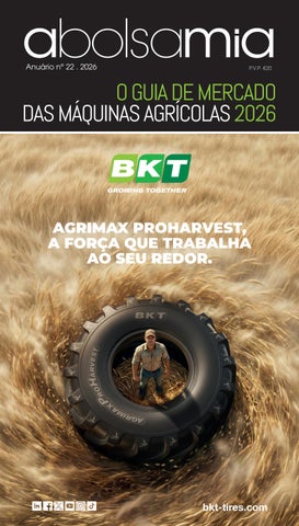 DIRETORA Catarina Gusmão | EDITORA Nugon - Publicações e Representações Publicitárias, Lda. TÍTULO Anuário das Máquinas Agrícolas | CONTRIBUINTE N.º 502 885 203 | REGISTO N.º 117122 DEPÓSITO LEGAL Nº 215 018/4 | SEDE R. S. João de Deus, 21, 2670-371 Loures | ESCRITÓRIOS R. Nelson Pereira Neves, Loja 1 – 2670-338 Loures - Portugal | CONTACTOS T. 219 830 130 abolsamia@abolsamia.pt | PRODUÇÃO E REVISÃO abolsamia | PAGINAÇÃO Frederico Teopisto e Ricardo da Silva | IMPRESSÃO Ondagrafe - Rua da Serra 1, 2660-202 Santo Antão do Tojal | TIRAGEM 3.000 exemp. em papel | ALCANCE MÉDIO 7.000 leitores (6.000 em papel e 1.000 em digital)