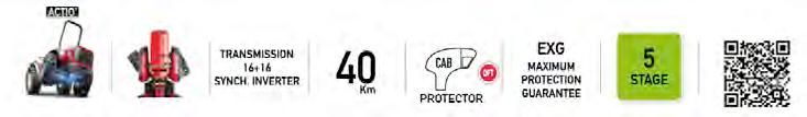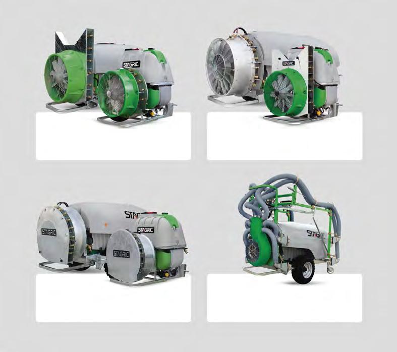 Capacidade de tanque (l): 2.000, 3.000 e 4.000; Diâmetro ventilador (mm): 900; Output (m3/h): 63.000; Capacidade da bomba (l/min): 120-160; Tipo de Cultura: Olival; Canais de ar: 1
