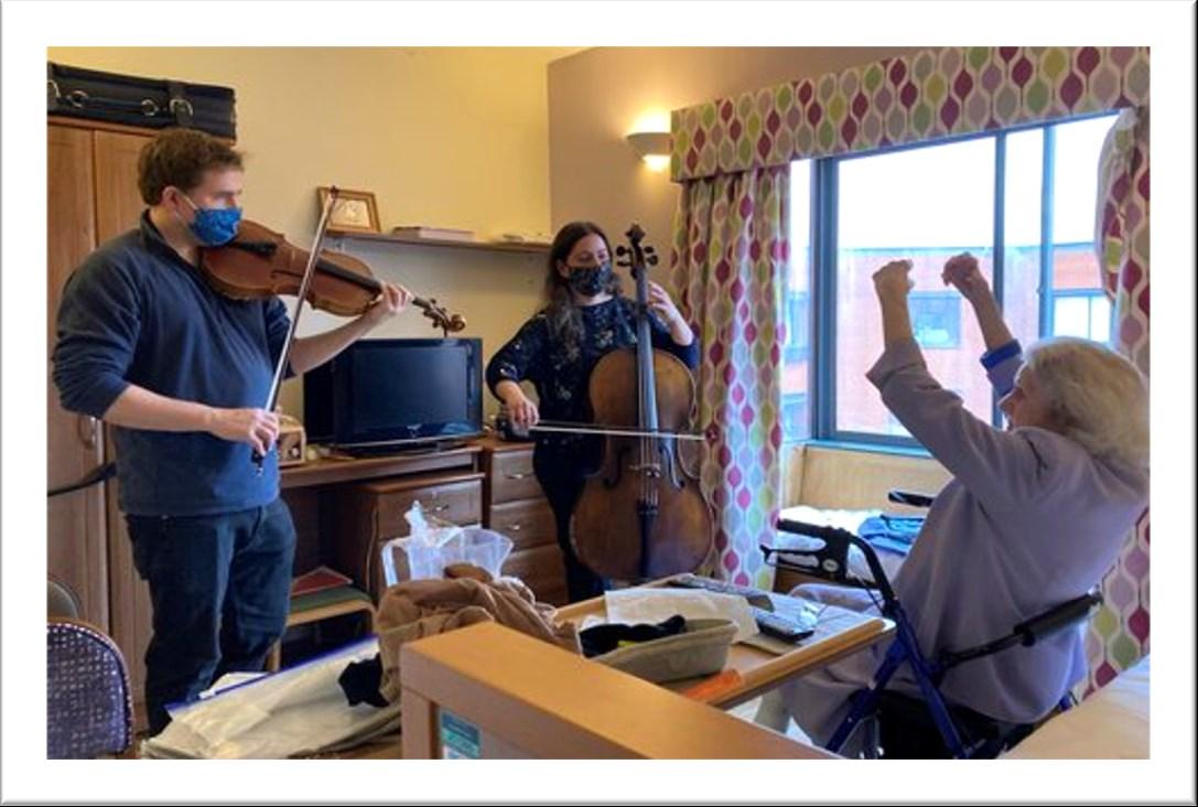 City of London Sinfonia has created the project Room to Room. Room to Room Music brings CLS musicians into care homes where they use responsive, spontaneous music-making to connect with the most isolated residents and staff. Connection, validation and mutual respect is at the core of the project.