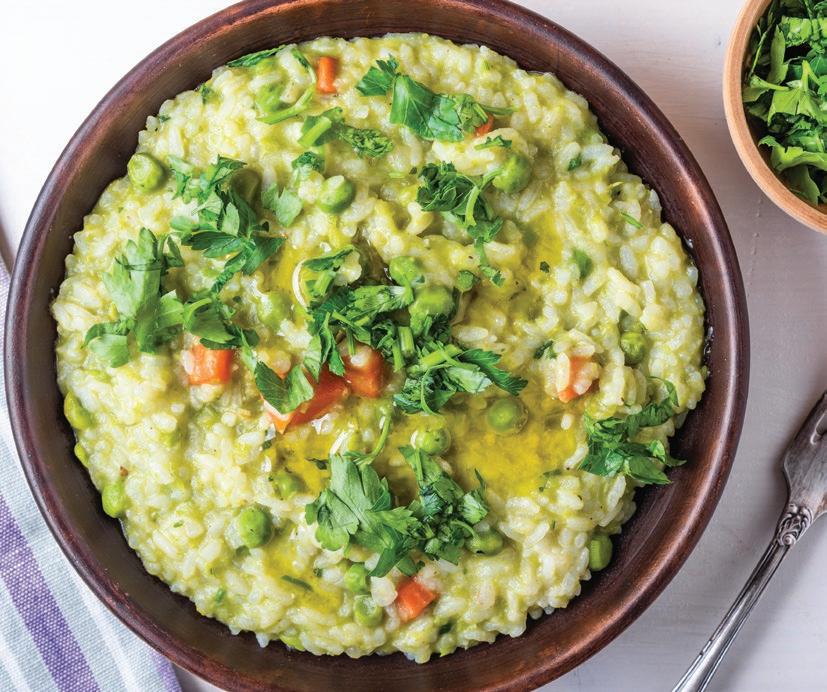 Note: This dish pairs beautifully with prawns added to the dish before the rice has fully absorbed the liquid.