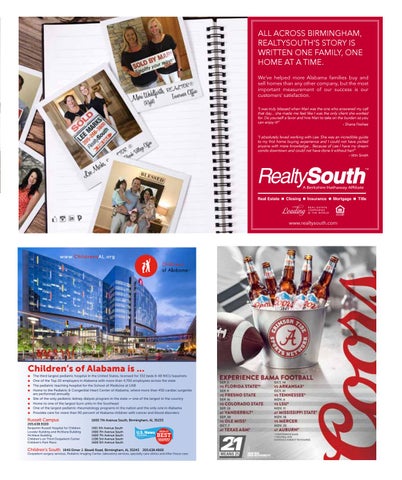ALL ACROSS BIRMINGHAM, REALTYSOUTH’S STORY IS WRITTEN ONE FAMILY, ONE HOME AT A TIME. We’ve helped more Alabama families buy and sell homes than any other company, but the most important measurement of our success is our customers’ satisfaction. “I was truly blessed when Mari was the one who answered my call that day... she made me feel like I was the only client she worked for. Do yourself a favor and hire Mari to take on the burden so you can enjoy it!” - Shana Foshee “I absolutely loved working with Lee. She was an incredible guide to my first home buying experience and I could not have picked anyone with more knowledge... Because of Lee I have my dream condo downtown and could not have done it without her!” - Win Smith