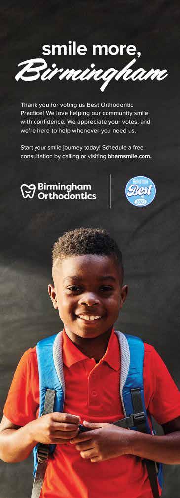 Sept COVER 12 Misty’s Summer Soiree - Hosted by ARC in Homewood 14 Handling Your Child’s Cell Phone Addiction - By Crystal Mullen-Johnson 16 How a Div. 1 Athlete Trains - University of Alabama Pole Vaulter Discusses Her Routine 18 Staying Fit with a Genetic Disease - By Maddie Hagller 22 What is Perimenopause? - Deanna Pizitz Explains 28 2023 Football Schedule - High School and College 32 Otey’s Fest - 2023 Shindig 40 Wineology - Part of Bham Restaurant Week 42 Back to Walk Night - Supporting the Alzheimer’s Association 44 What’s the Deal with These Weight Loss Injectables? - We Follow a User 52 Restaurant Week’s Preview Party ABOUT 2 TOWN INSIDE Riley White, University of Alabama Pole Vaulter To see all the party pics, visit abouttown.io