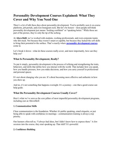 AboveSkill is a unique platform offering specialized workshops designed to enhance essential soft skills and communication skills. Our programs cater to learners of all ages and professional levels, equipping them with vital skill development tools for personal and professional growth. We provide an extensive range of workshop programs, including: - Soft skills training for preschoolers, school students, university students, and corporate professionals. - Communication skills training with a focus on business communication skills, stress management, and effective communication techniques. - Emotional intelligence and life coaching programs to foster overall personal development. - Join our community and experience transformative learning that prepares you to tackle life's challenges and achieve great success.