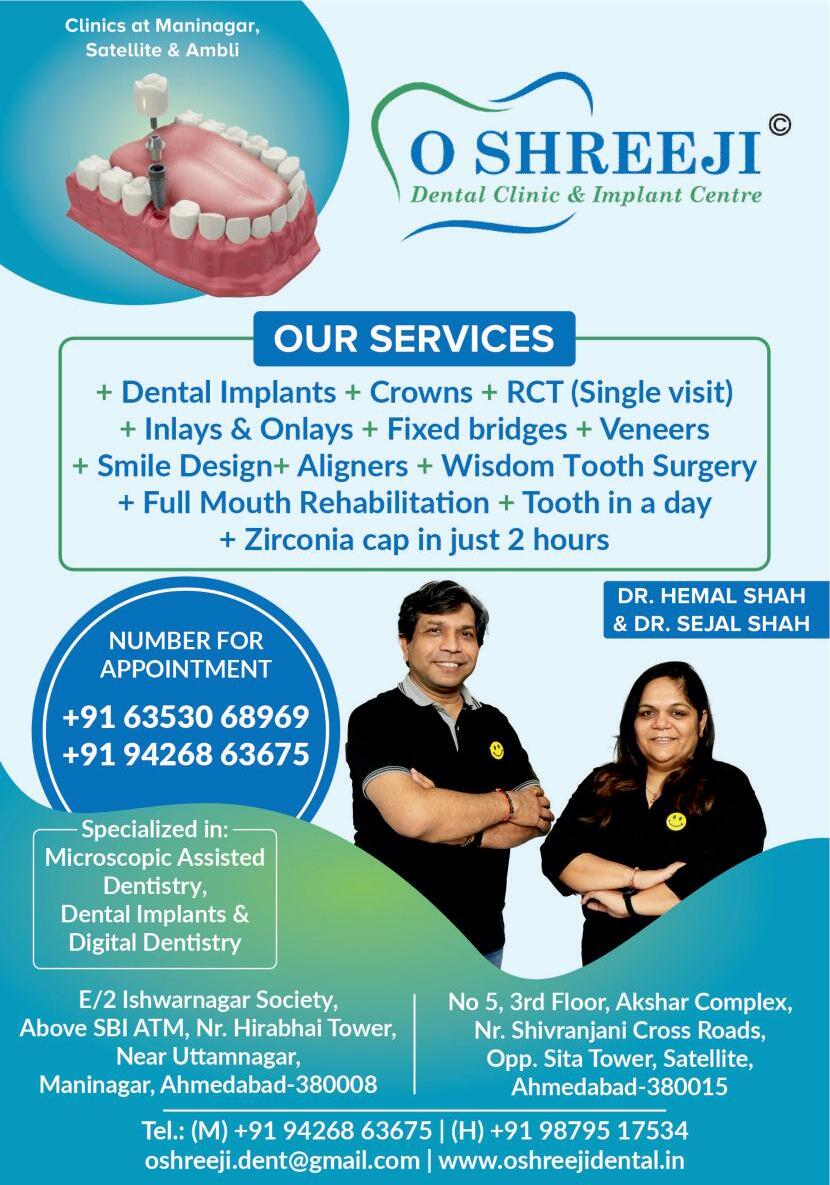 Dr Hemal Shah and Dr Sejal Sh ah, the founder of O Shreeji Dental Healthcare Pvt Ltd They have over 25 years of expertise in dental implants Both of them have done
