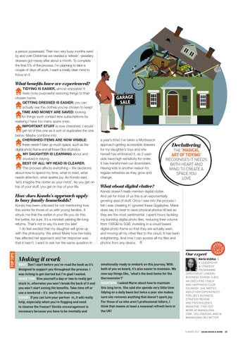 Kondo has been criticised for not mentioning how this works for those of us with young families. It struck me that the earlier in your life you do this, the better, for sure. It’s a mindset yielding life-long returns. That’s not to say it’s ever too late! I do feel excited that my daughter will grow up with this philosophy. We asked Marie how her baby has affected her approach and her response was that it hasn’t. I want to ask her the same question in