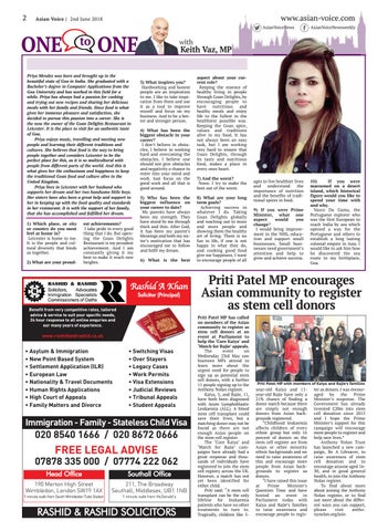 ages to live healthier lives and understand the importance of nutrition and the benefits of traditional spices in food. 9) If you were Prime Minister, what one aspect would you change? I would bring improvement in the NHS, education and support small businesses. Small businesses need government’s attention and help to grow and achieve success.